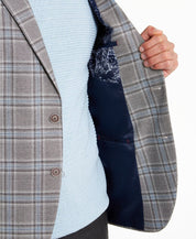 Add a stylish layer of sophistication to your luxe look with the refined modern fit and crisp plaid of this comfortable stretch sport coat from Nautica.