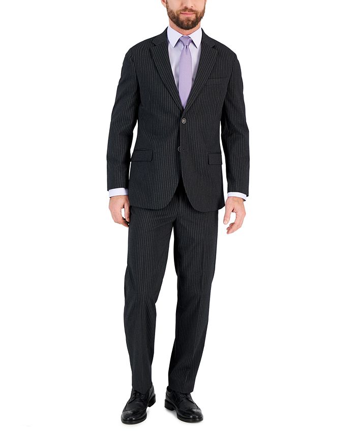 Elevate your professional wardrobe with this Nautica Modern-Fit Fall Suit in a stylish grey pinstripe design. Made from bi-stretch fabric for flexibility and comfort. Perfect for work or special occasions. Available in a modern fit for a sleek silhouette.
