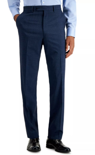 Nautica Men's Modern-Fit Bi-Stretch Suit Pants Blue Plaid 30 x 32
