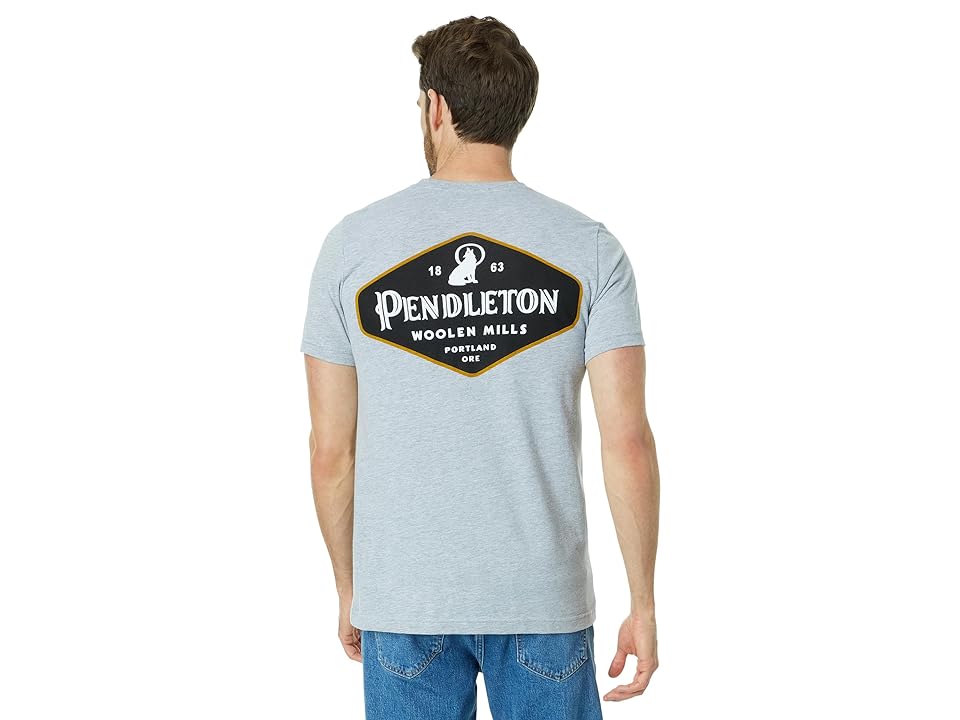 Elevate your casual style with the Pendleton Men's Heritage Lobo Diamond Logo Graphic T-Shirt. This athletic heather and white tee features a bold graphic print of the iconic Pendleton logo, giving it a classic and modern appeal. Made with soft and comfortable fabric, this t-shirt is perfect for everyday wear. Upgrade your wardrobe with this stylish and high-quality piece from Pendleton.