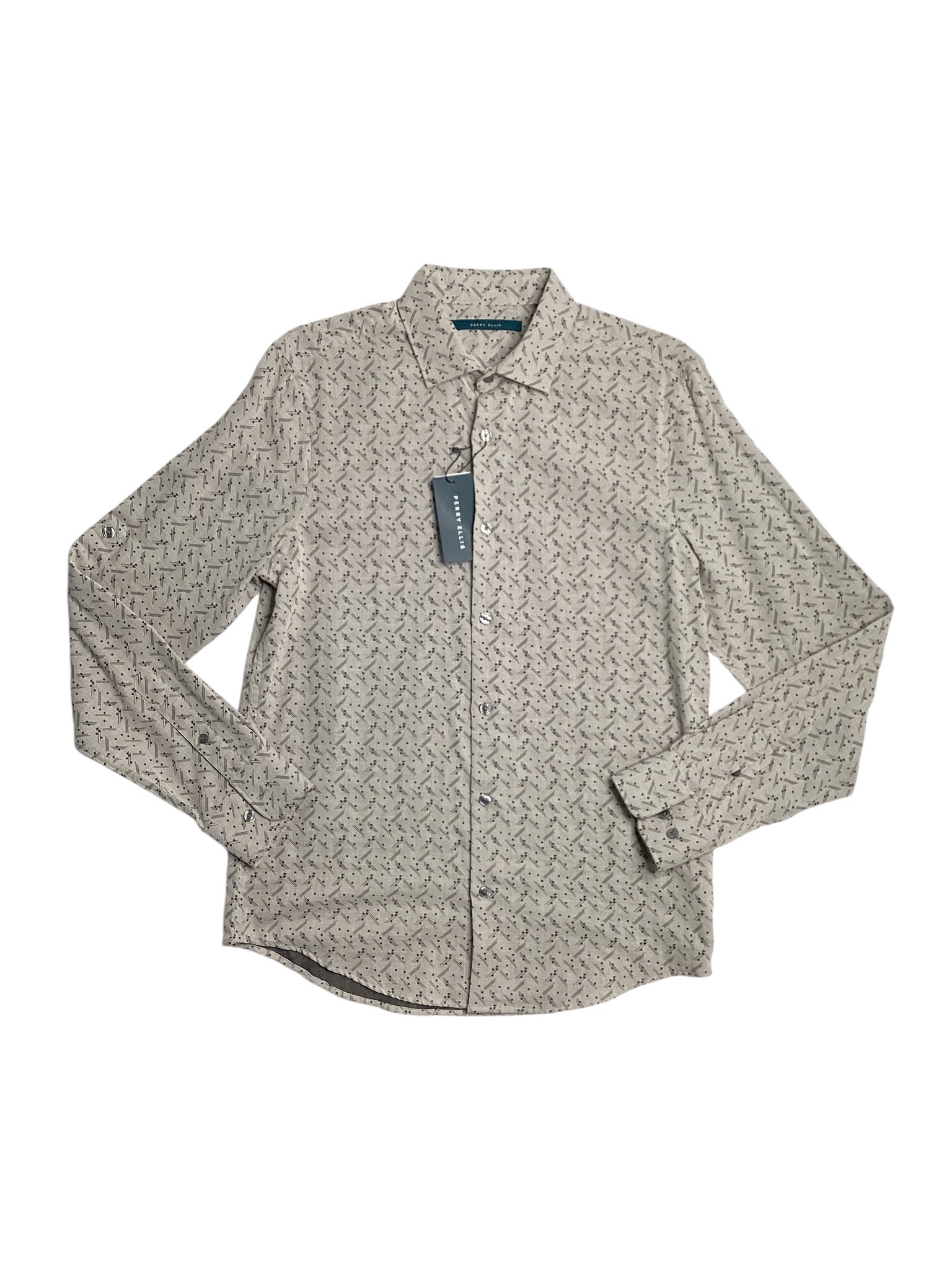 Perry Ellis Men's Geo Double Face Long Sleeve Button Down Shirt Beige Medium