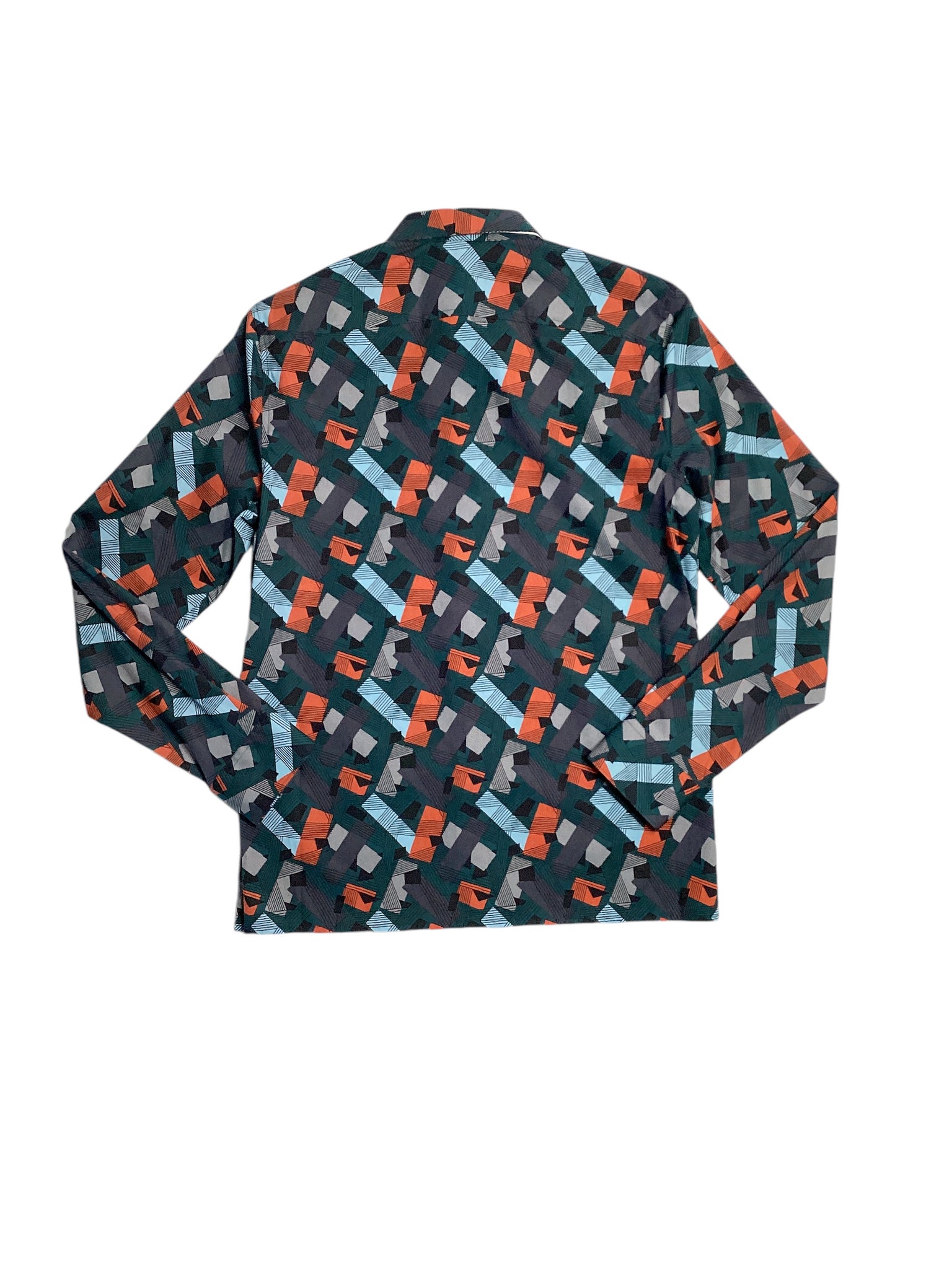 Perry Ellis Mens Graphic Print Button Down Shirt Blue Small