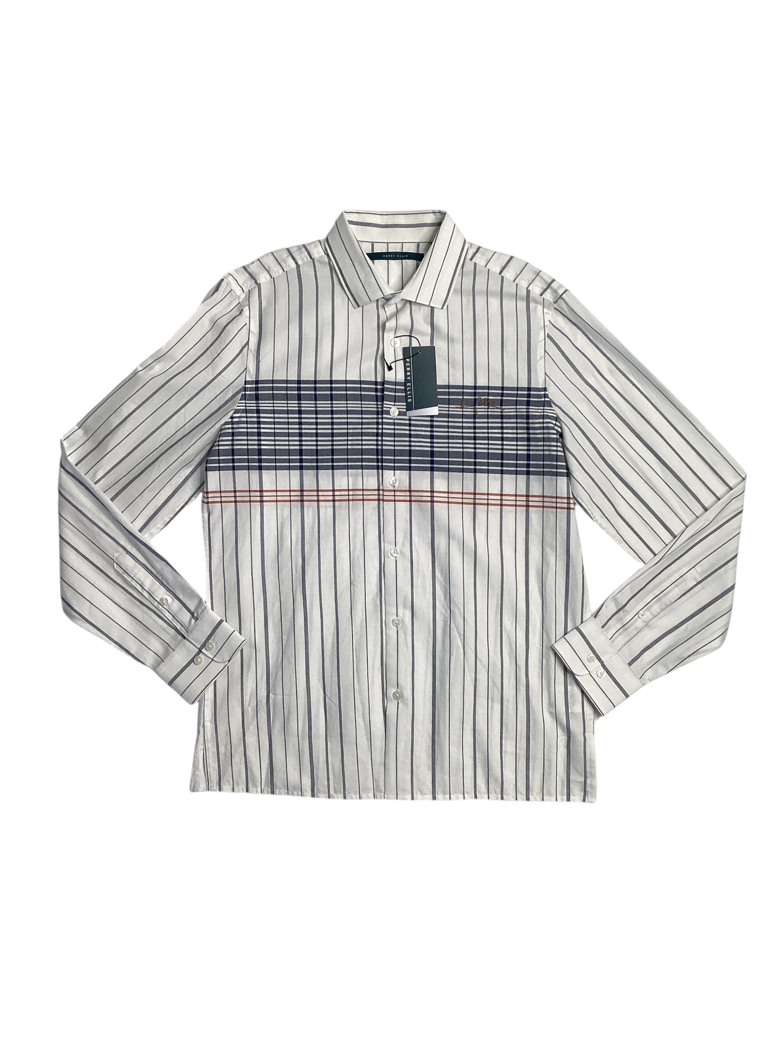 Perry Ellis Mens Slim fit Long Sleeve Button-Up Shirt XXL White Blue Striped