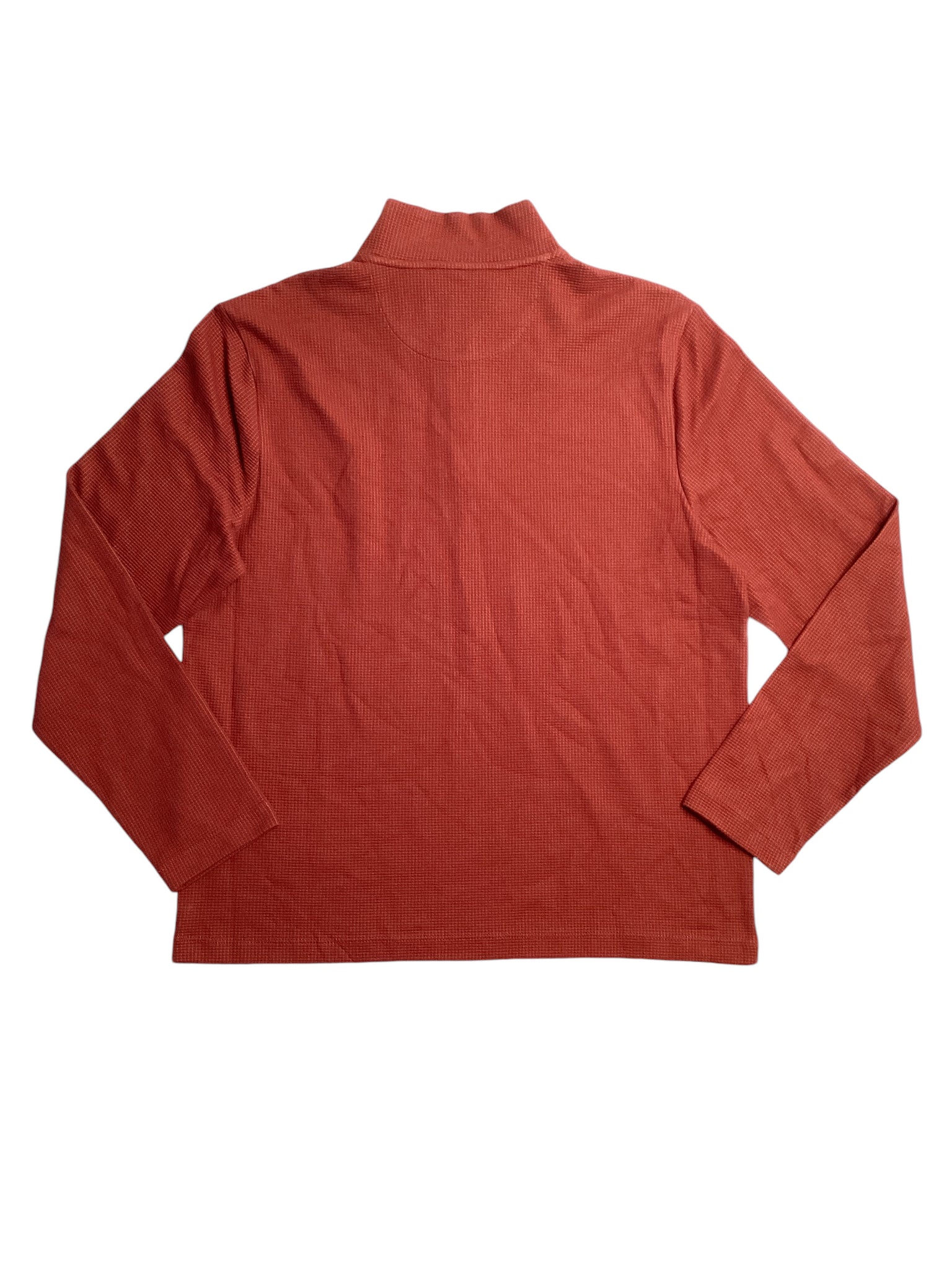 Perry Ellis Mens Waffle Knit Quarter Zip Sweater Fired Brick Red XL