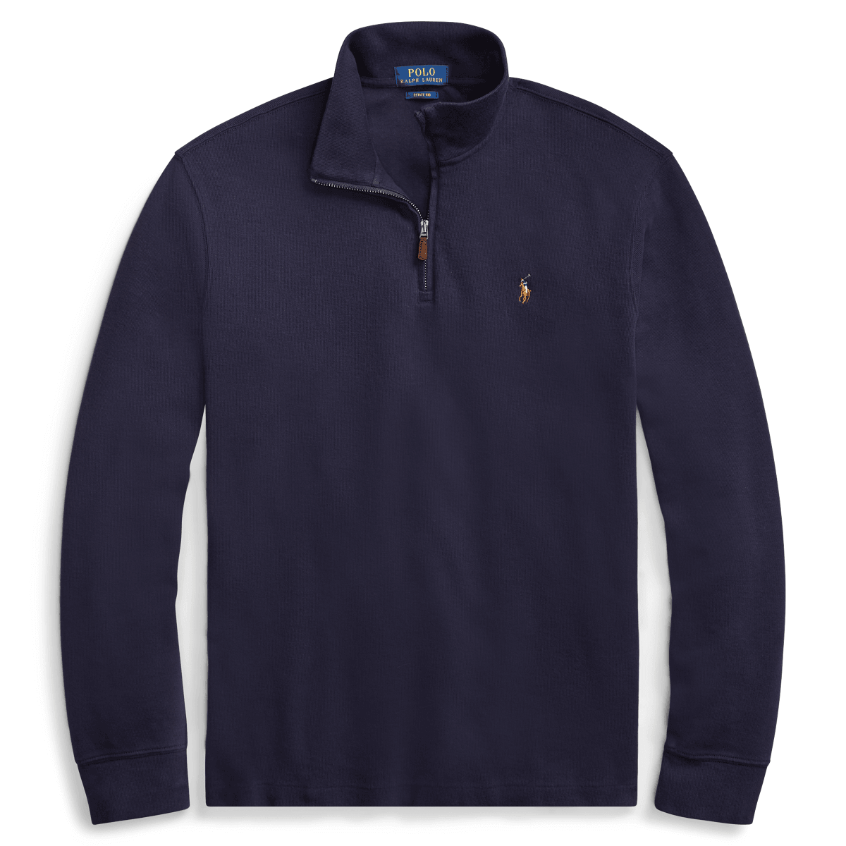 Stay stylish and comfortable with this Polo Ralph Lauren Men's Big & Tall Estate-Rib Quarter-Zip Pullover. The classic cruise navy color and ribbed design add a touch of sophistication to any outfit. Perfect for layering or wearing on its own, this pullover is made from soft and durable fabric for all-day comfort. The quarter-zip closure allows for easy on and off, while the iconic Polo Ralph Lauren logo on the chest adds a signature touch. An essential addition to any big and tall man's wardrobe.