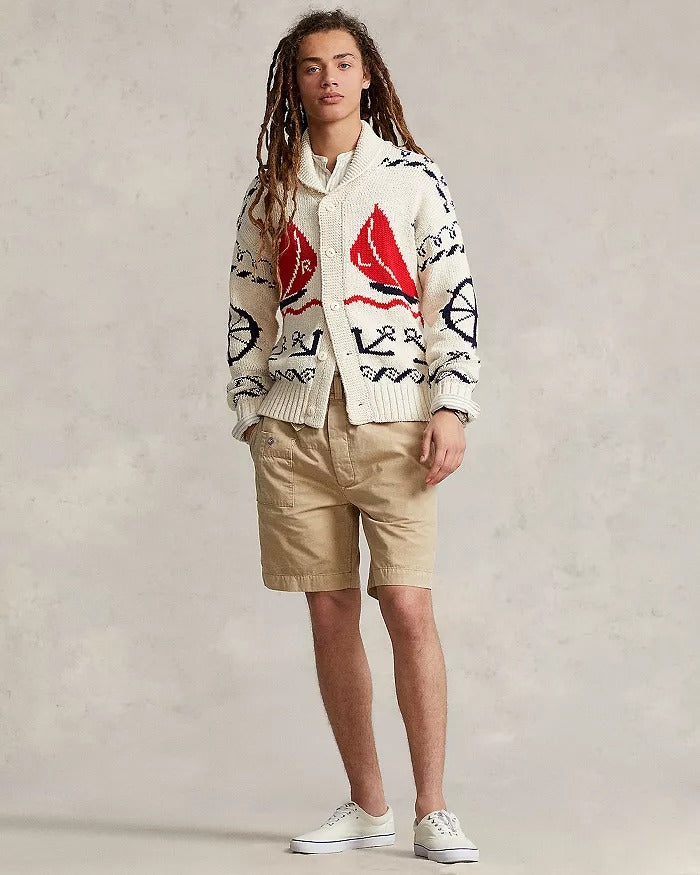 Polo Ralph Lauren Mens Chunky Knit Nautical Shawl Collar Cardigan Sweater Large