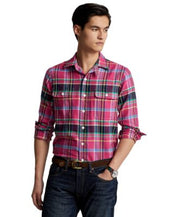 Polo Ralph Lauren Men's Classicfit Twill Workshirt Pink Navy XXL