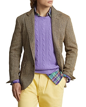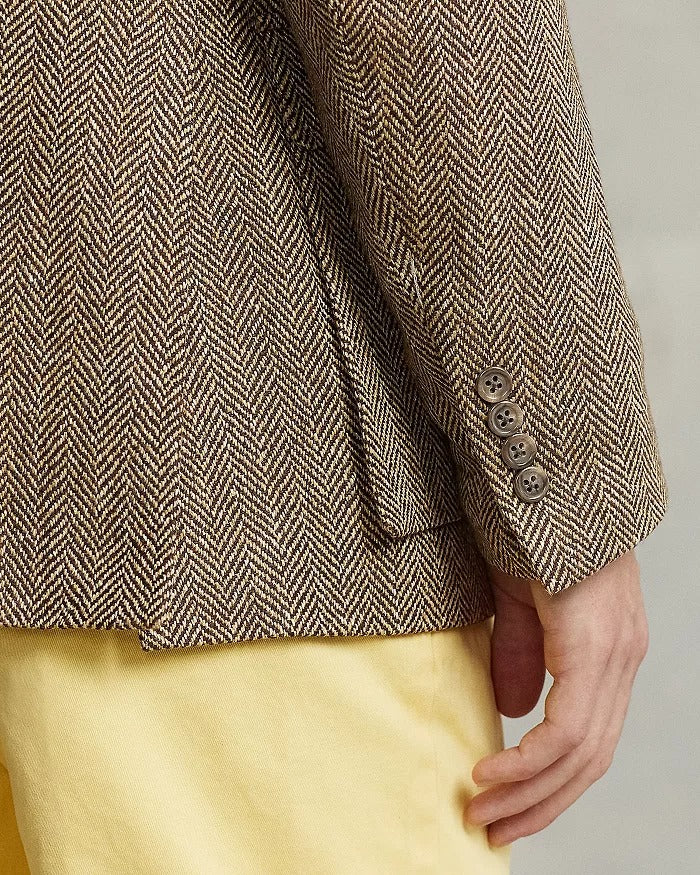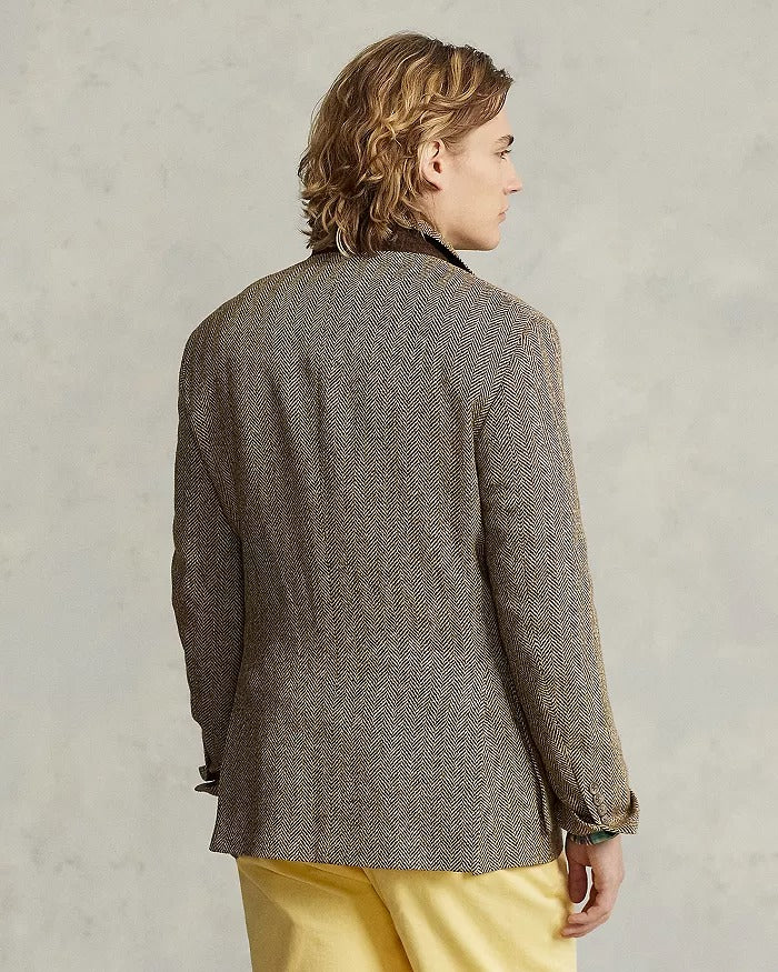 Polo Ralph Lauren Mens RL67 Herringbone Blazer Jacket Sport Coat Brown 40R