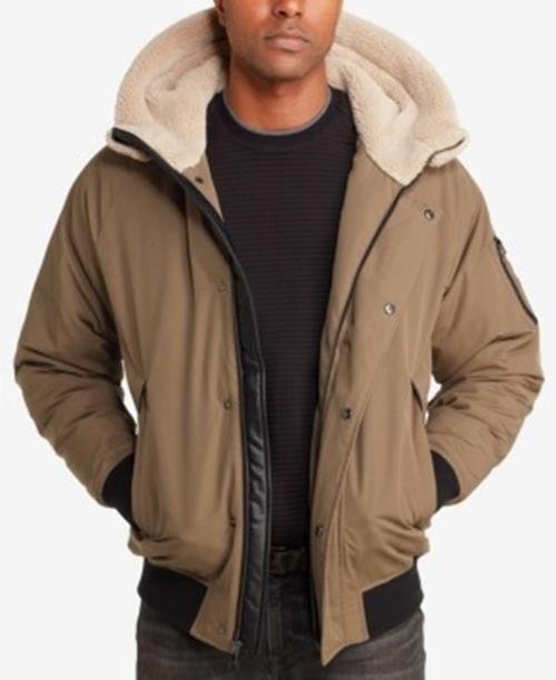 SEAN JOHN Men's Bomber Jacket Coat Small Olive Green Fleece Lined Hood