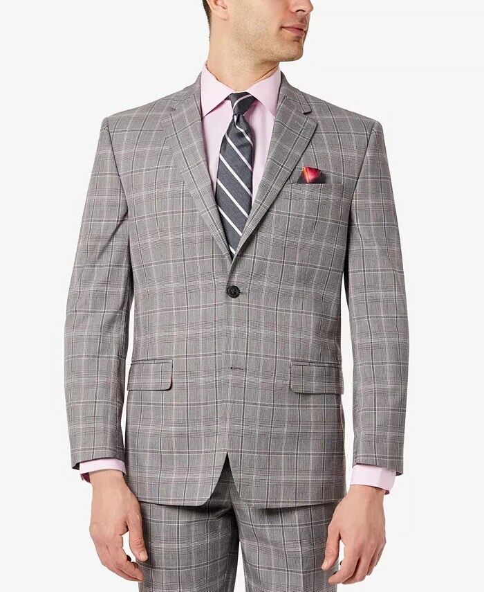 SEAN JOHN Men's Classic-Fit Plaid Suit Jacket 40R Grey / Red