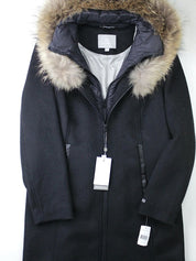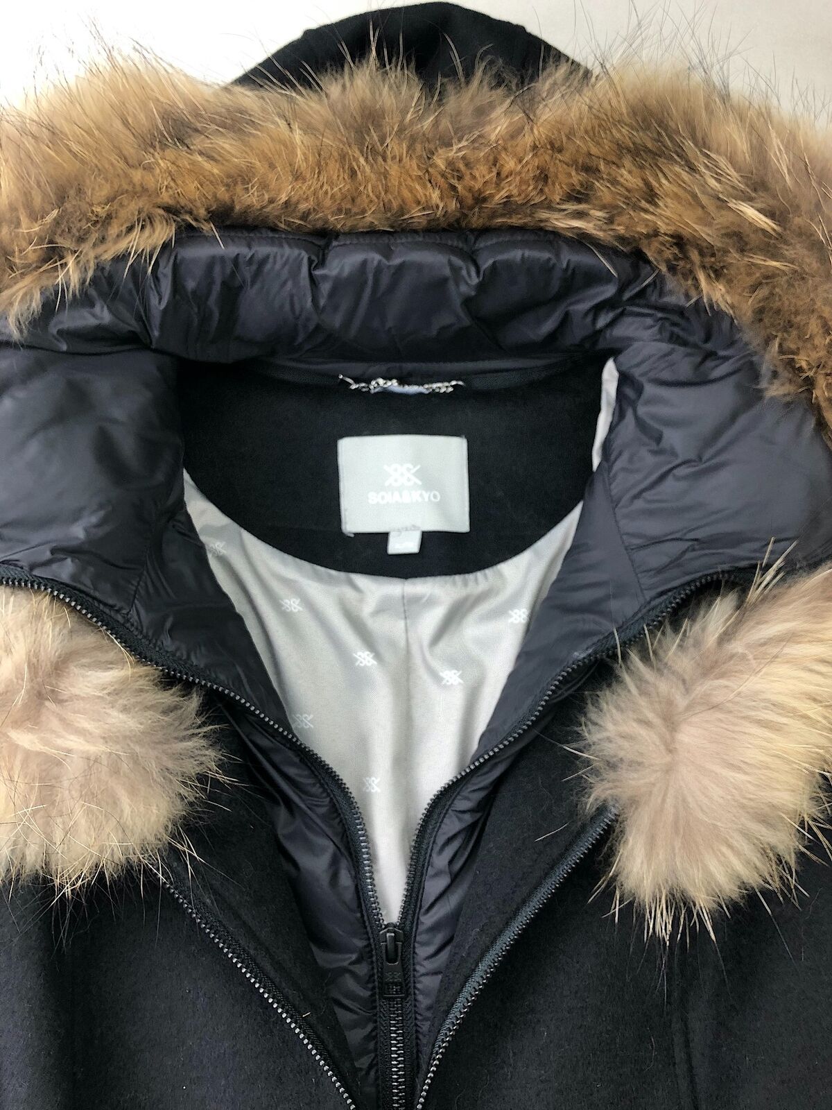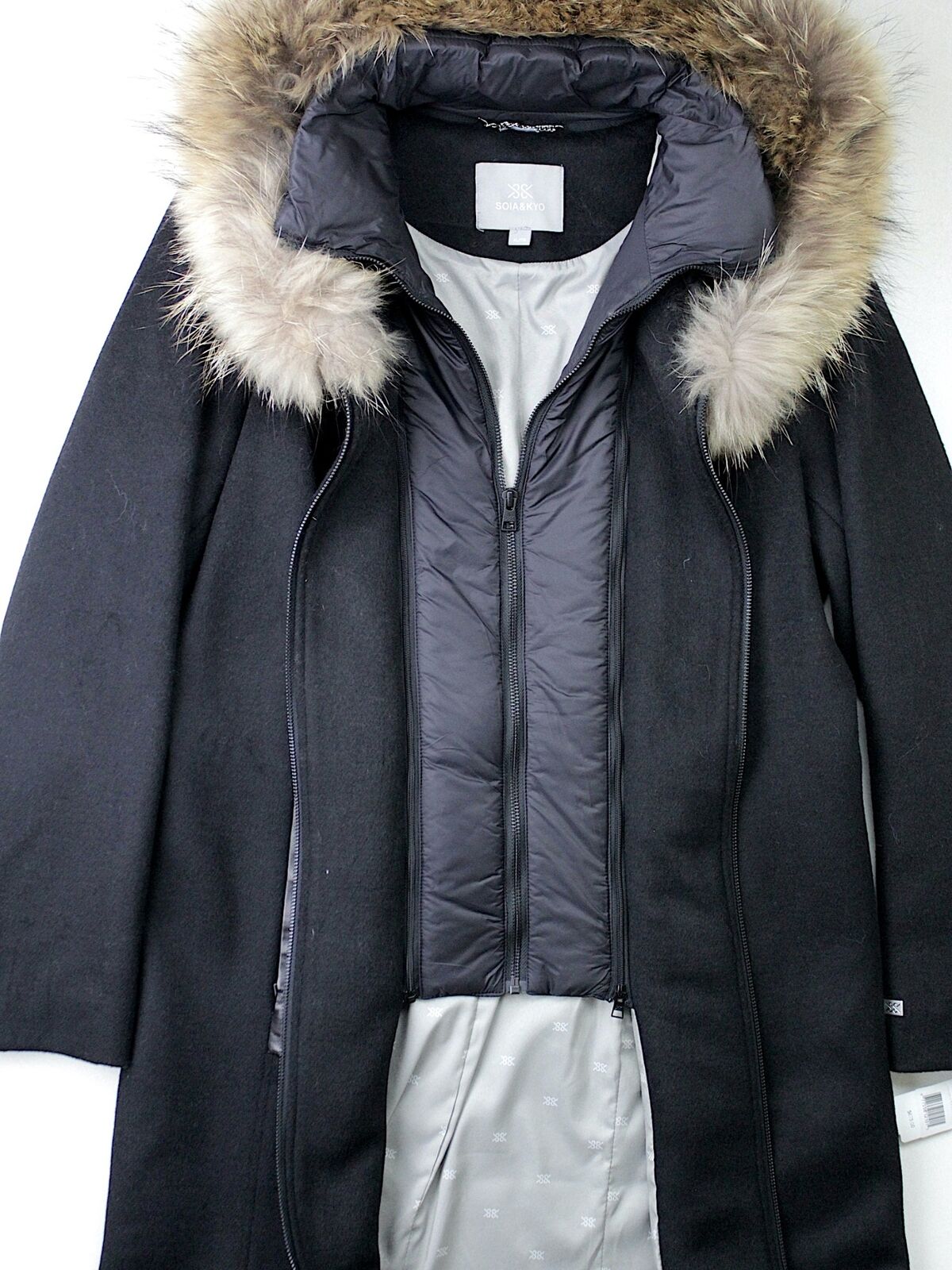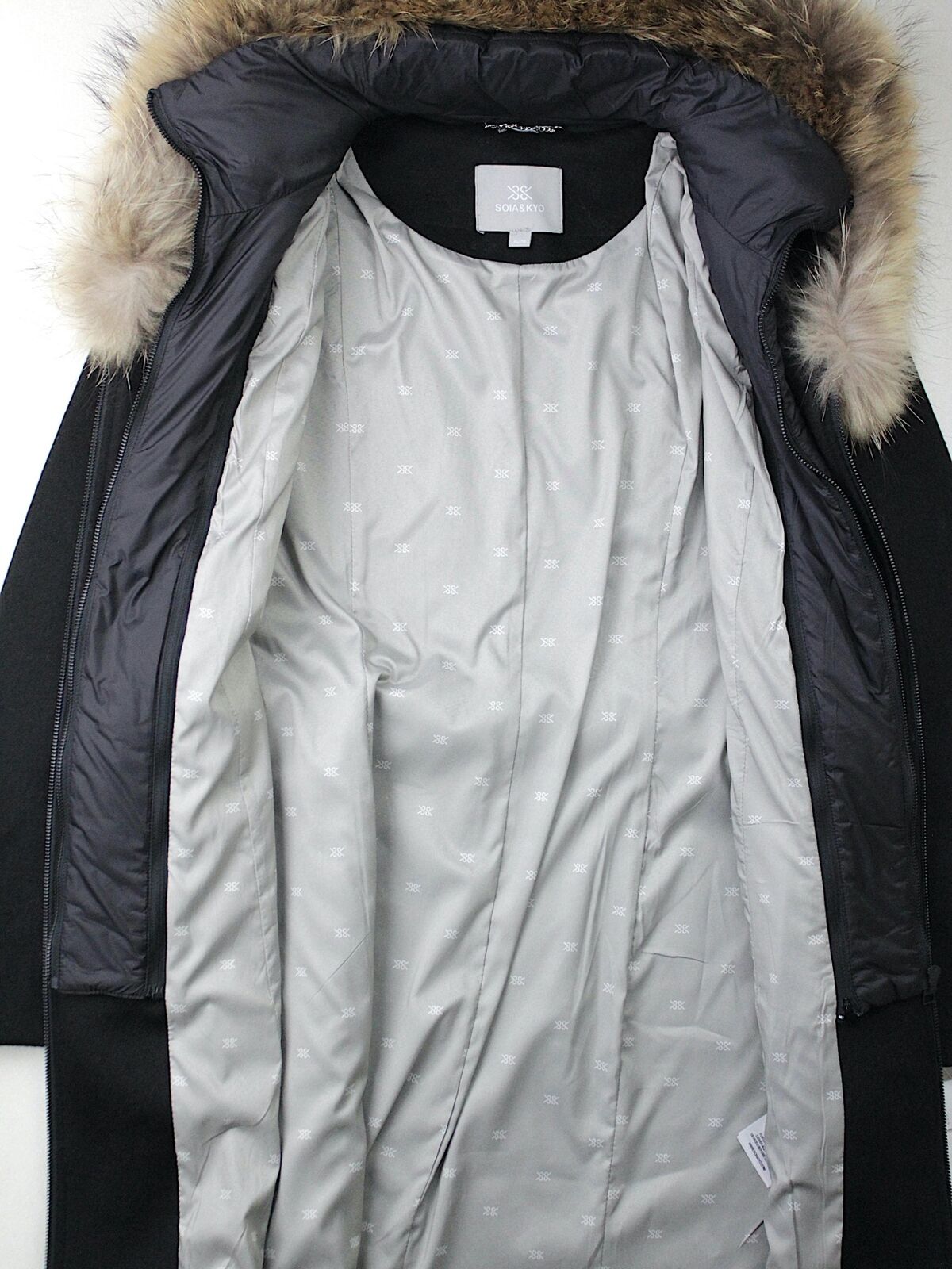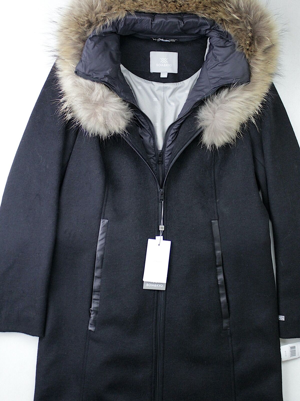 Soia & Kyo Womens Charlena Fur Trim Wool Coat XL Black