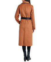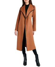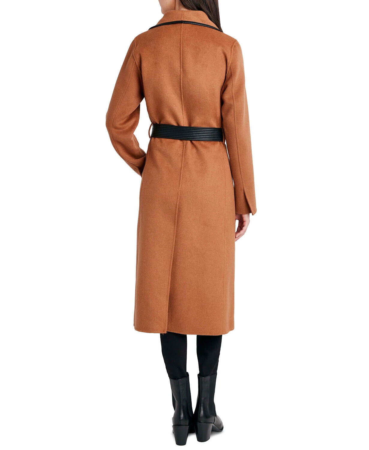 Tahari Womens Faux-Leather-Trim Belted Wrap Coat Small Caramel Brown