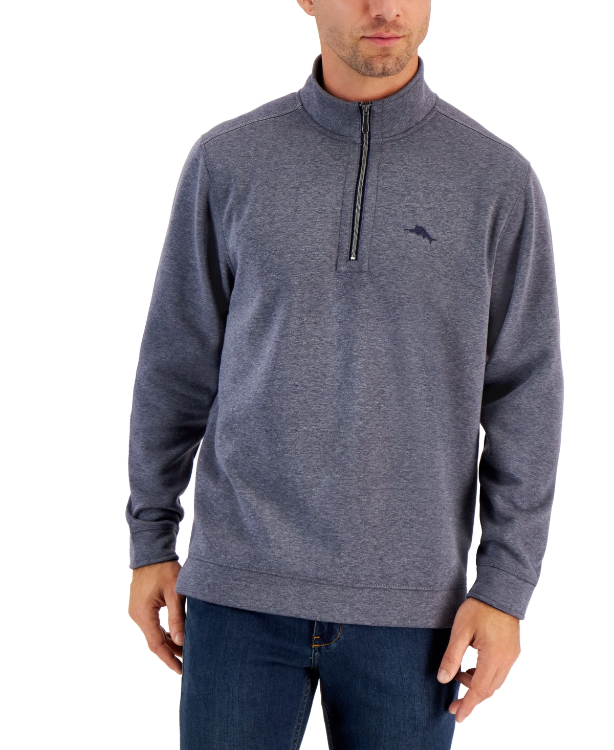 Tommy Bahama Men's Tango Wave Half Zip Sweatshirt Coastline Heather Navy Large