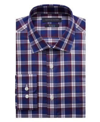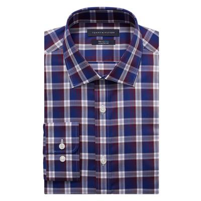 Tommy Hilfiger Flex Cool Athletic Fit Dress Shirt Navy Burgundy Red 16 X 34-35