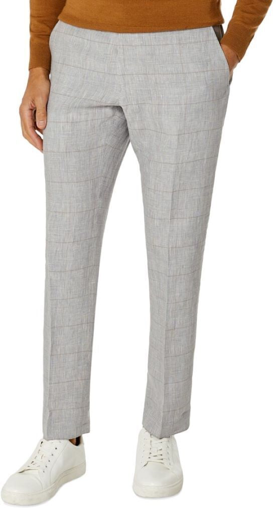 Tommy Hilfiger Men Modern Fit Flex Stretch Plaid Linen Pants Grey Tan 33 X 32