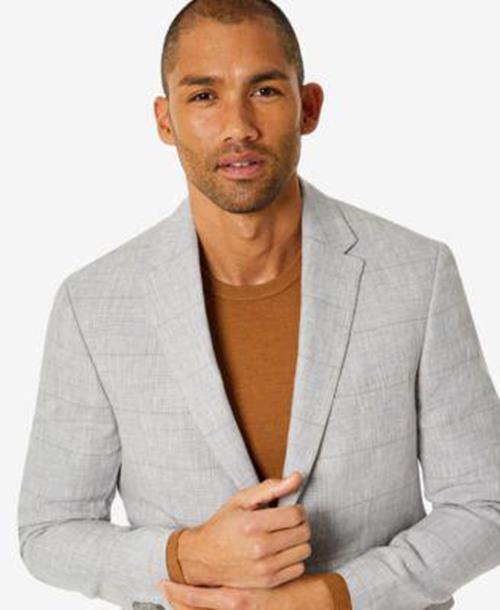 Tommy Hilfiger Men Modern Fit Flex Stretch Plaid Linen Suit Jacket Grey Tan 40L