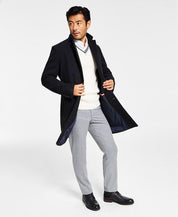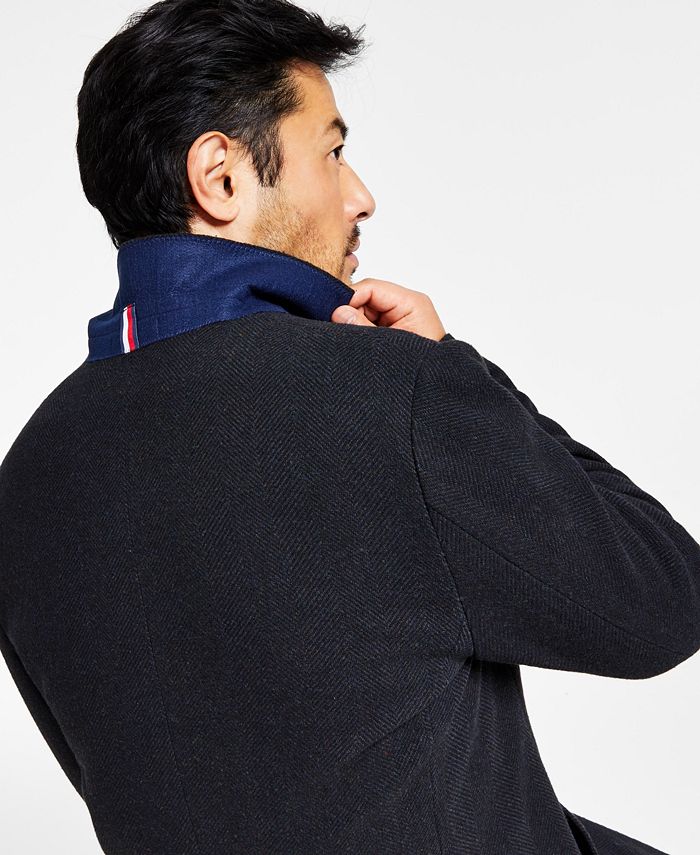 Tommy Hilfiger Mens Addison Wool Trim Fit Overcoat Coat 38S Navy Blue Solid