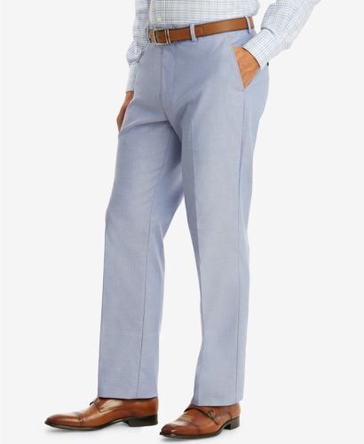 Take your professional style and comfort to a whole new level with the stunning streamlined tailoring and unrestrictive THFlex stretch design of these blue chambray suit pants from Tommy Hilfiger.