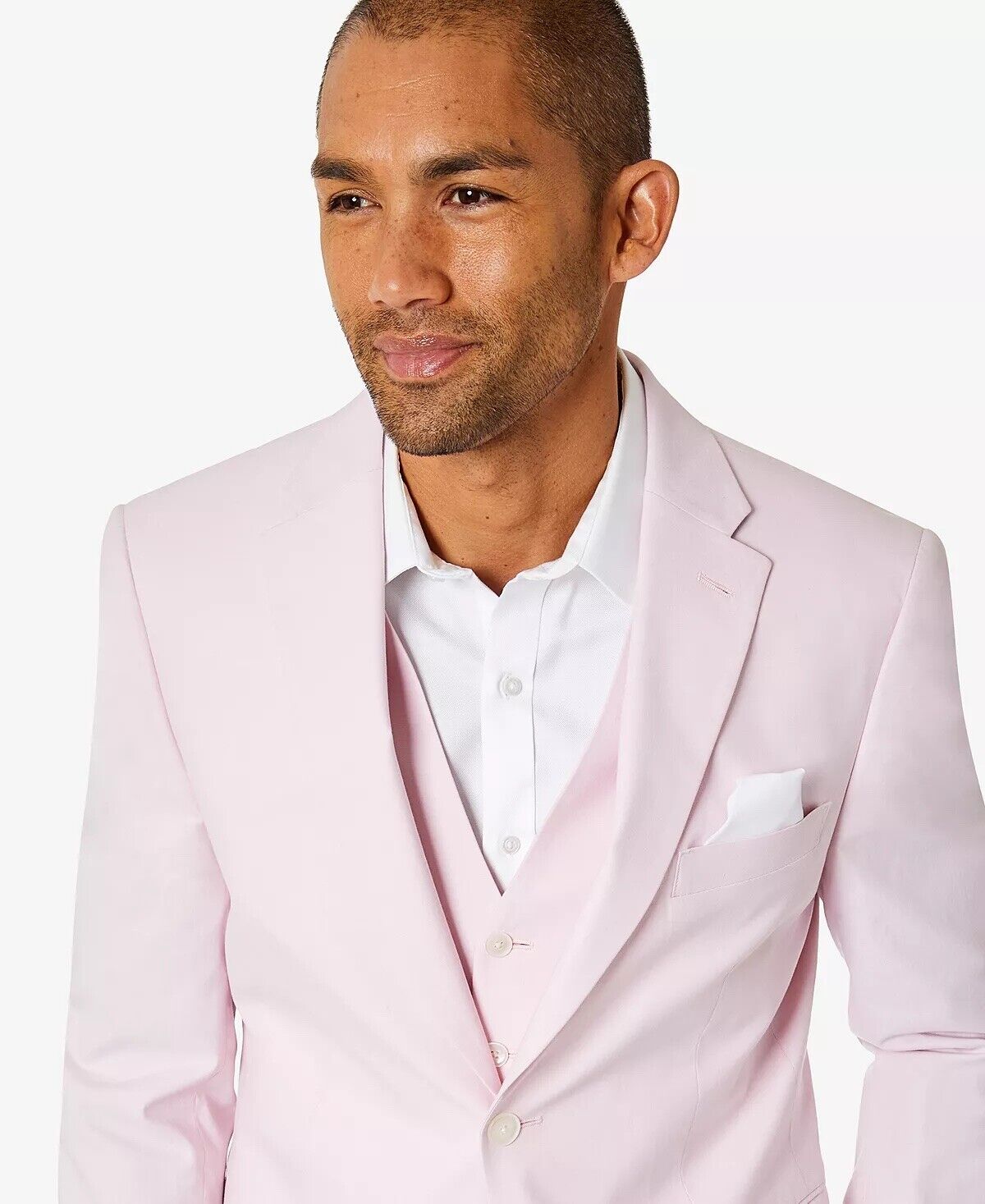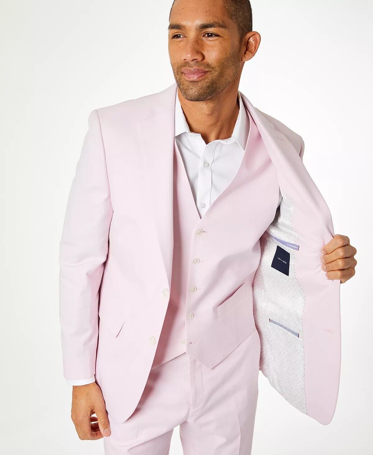 Tommy Hilfiger Mens Chambray Suit Jacket Light Pink 44S Modern-Fit Flex Stretch