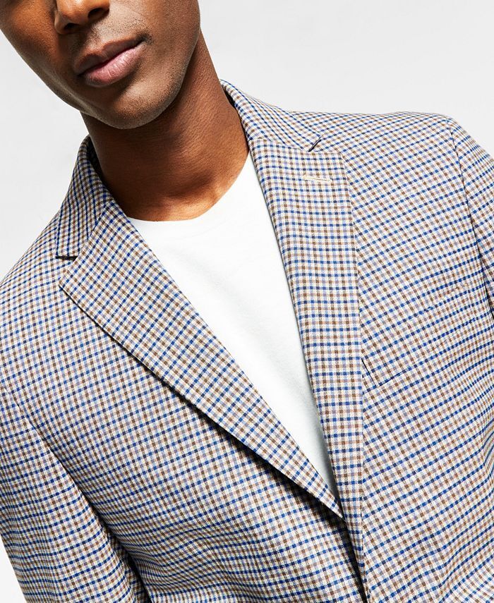 TOMMY HILFIGER Men's Modern-Fit Brown Blue Check Blazer 42S Sport Coat