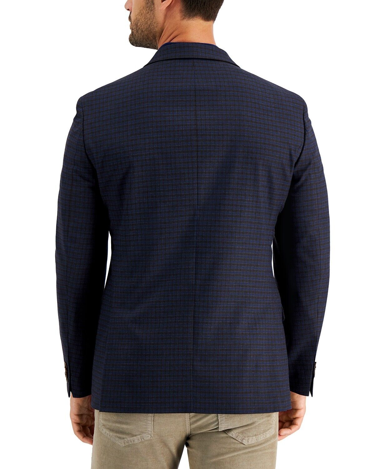 - Side vents; fully lined; plaid pattern