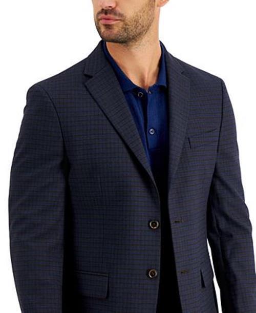 Tommy Hilfiger Men's Modern-Fit Brown Blue Plaid Blazer Sport Coat 40L