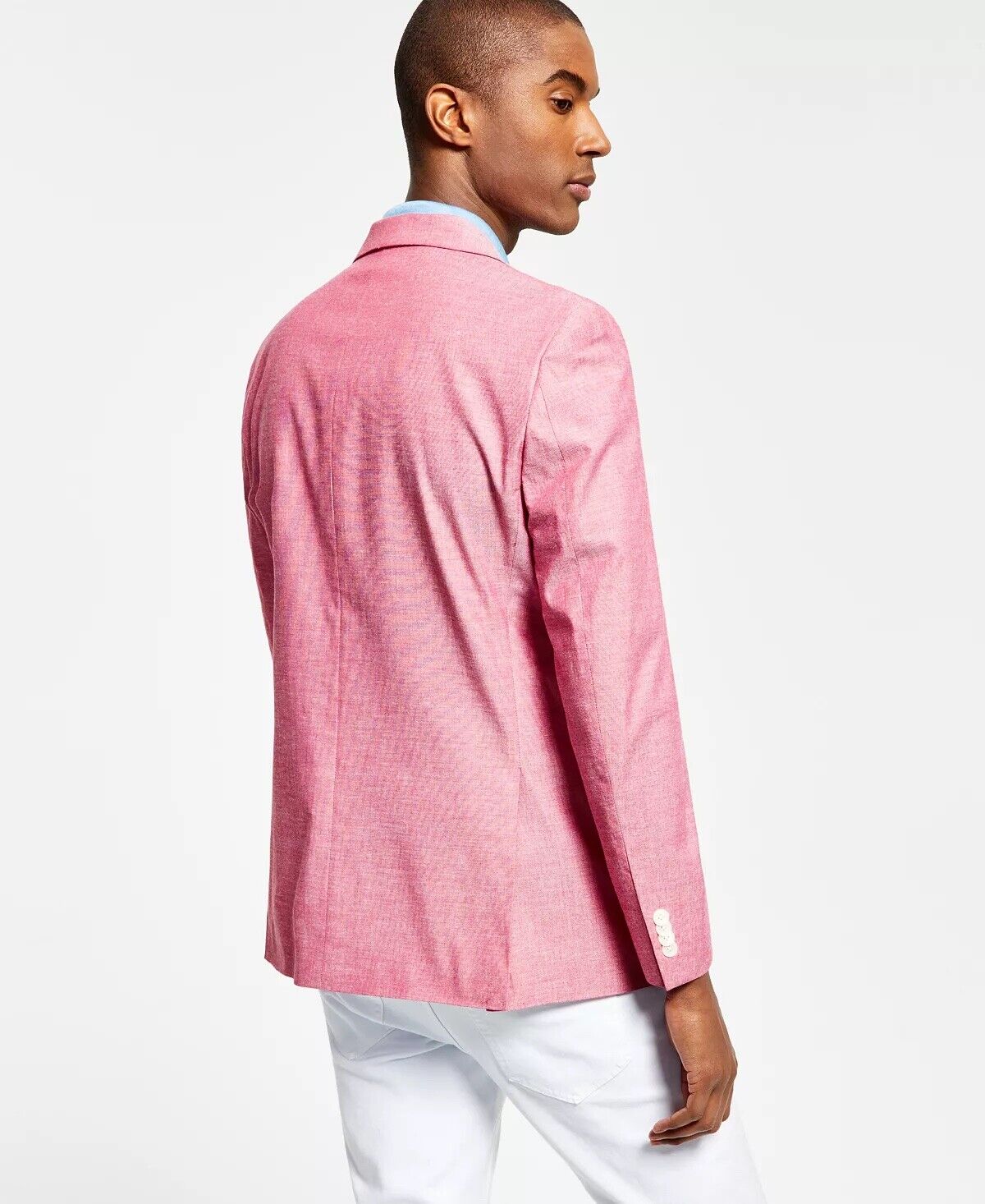 Tommy Hilfiger Men's Modern-Fit Chambray Blazer Red 40L Sport Coat