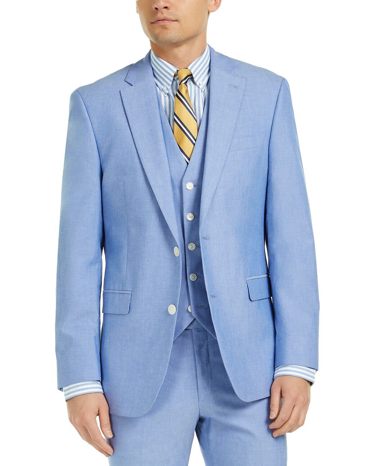 Tommy Hilfiger Men's Modern-Fit Flex Stretch Chambray Sport Coat 42L Blue