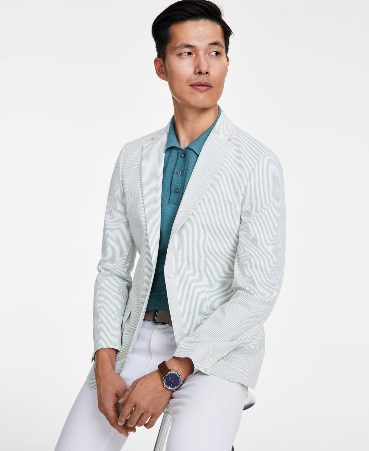 Tommy Hilfiger Mens Modern fit Sport Coat Blazer 36 S Light Green Striped