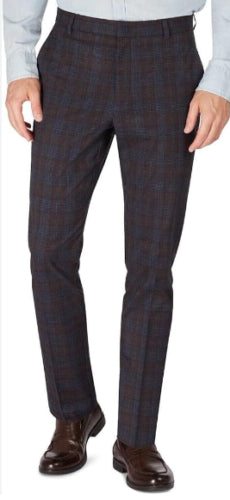 Tommy Hilfiger Men's Modern-Fit Stretch Check Dress Pants 30 X 32 Navy / Wine