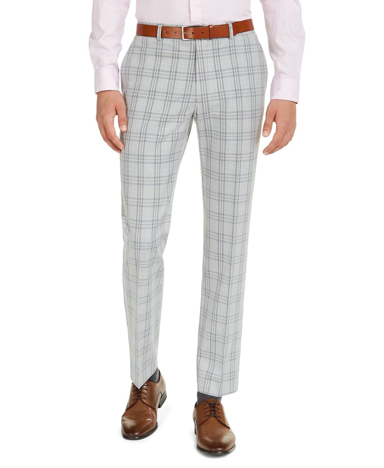 Tommy Hilfiger Men's Modern-Fit Th Flex Stretch Pants 32 X 32 Grey Plaid
