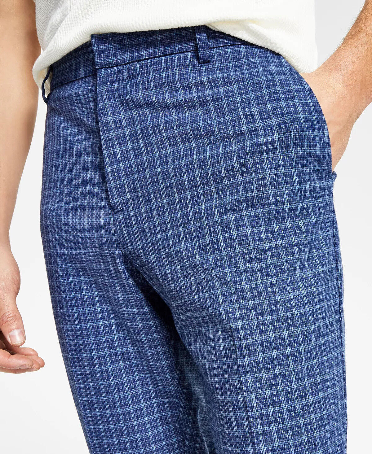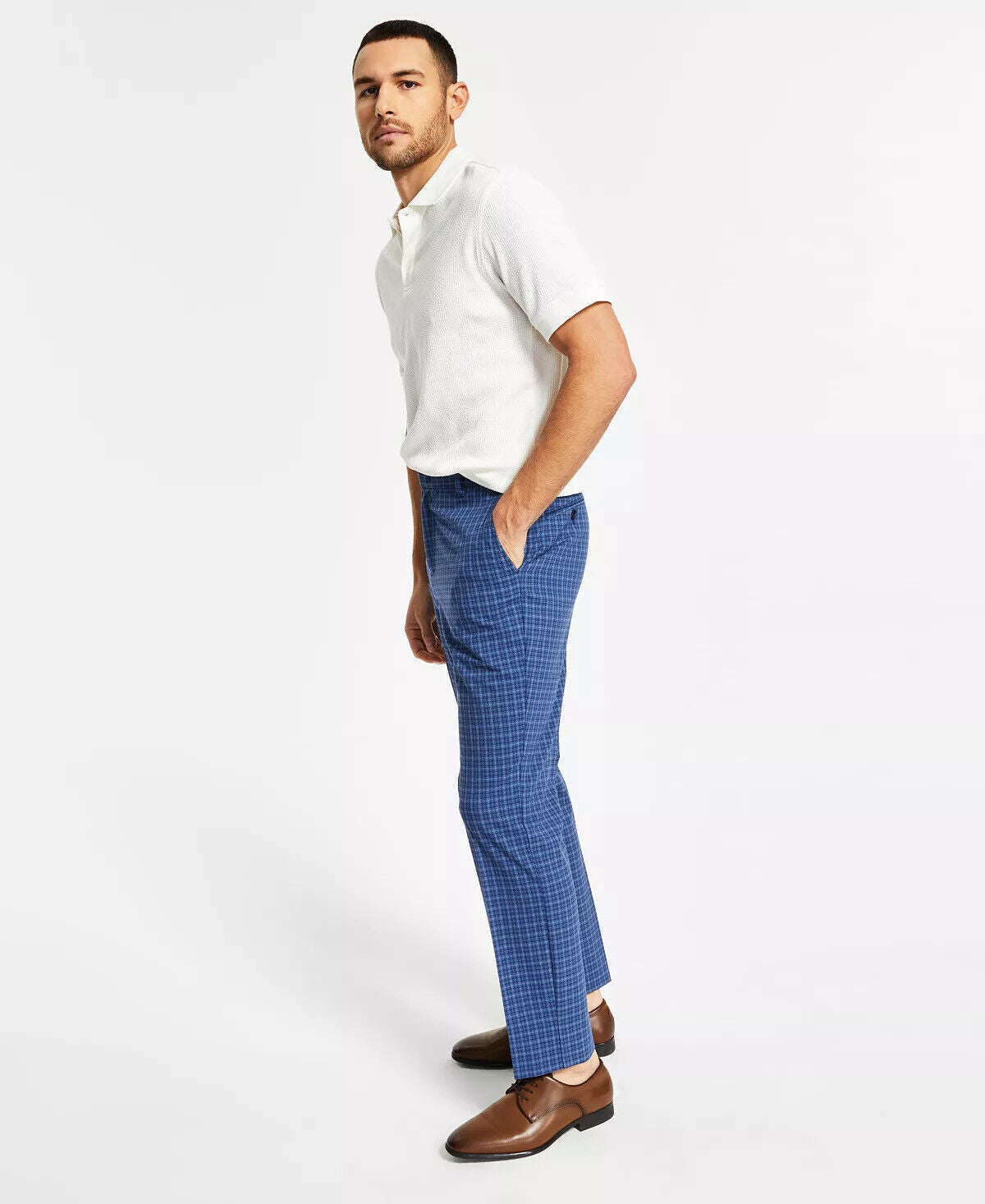 Tommy Hilfiger updates the classic windowpane check with the brisk blue-tone and sleek modern cut of these handsome, easy-care dress pants.