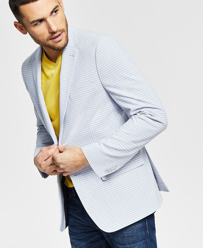 Tommy Hilfiger Men's Modern Stretch Seersucker Sport Coat Blazer 40S Blue White