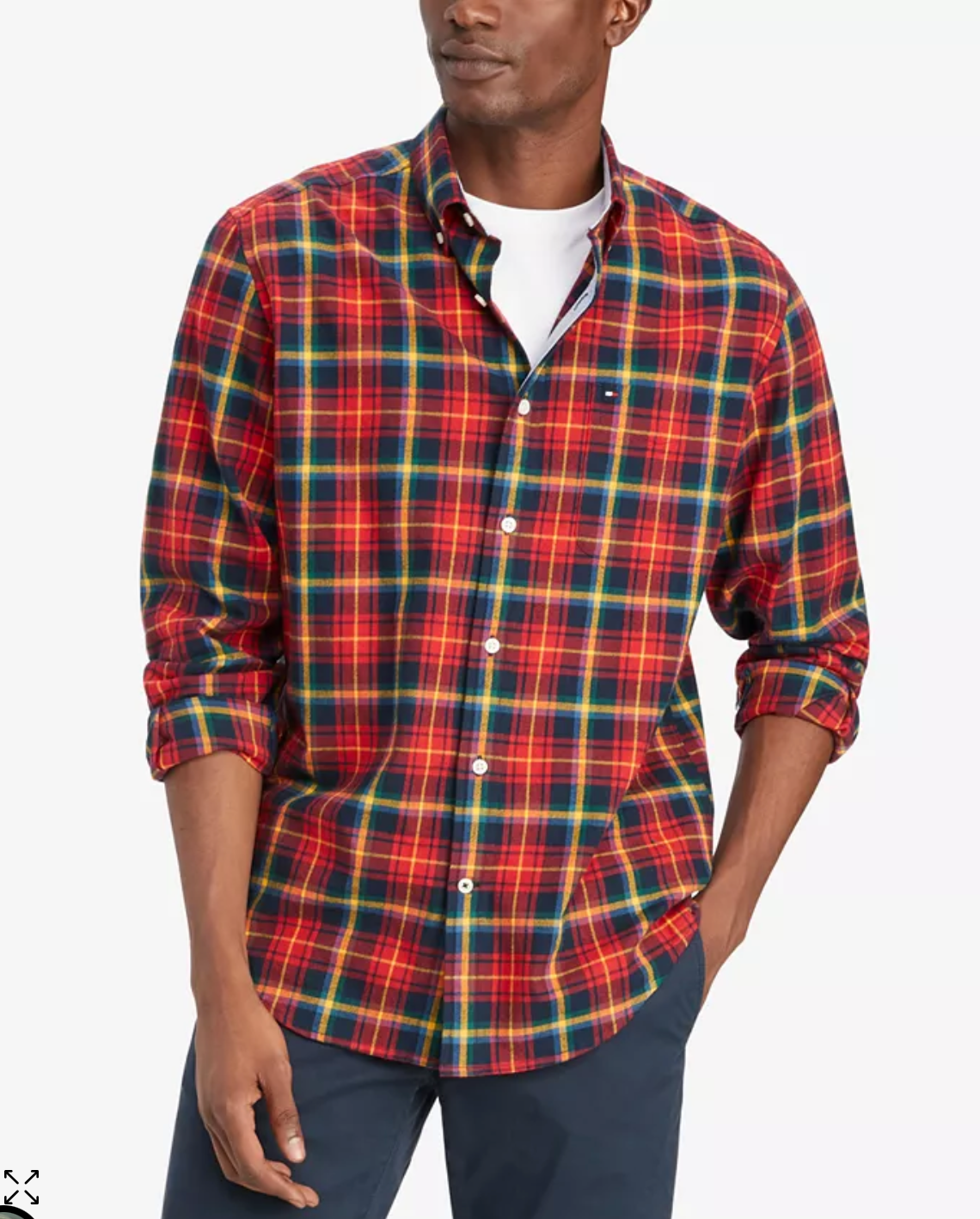 The Tommy Hilfiger Men's Plaid Classic-fit Shirt in Red Plaid is a stylish and versatile option for any man's wardrobe. The shirt features a classic plaid pattern in a rich red color, adding a touch of sophistication to any outfit. With its classic-fit design, it offers a comfortable and flattering silhouette. Additionally, the shirt is made from high-quality materials, ensuring durability and long-lasting wear. It can be easily paired with jeans, chinos, or dress pants for a casual or semi-formal look. Whether for a day at the office or a night out, this Tommy Hilfiger shirt is a must-have for the fashion-conscious man.