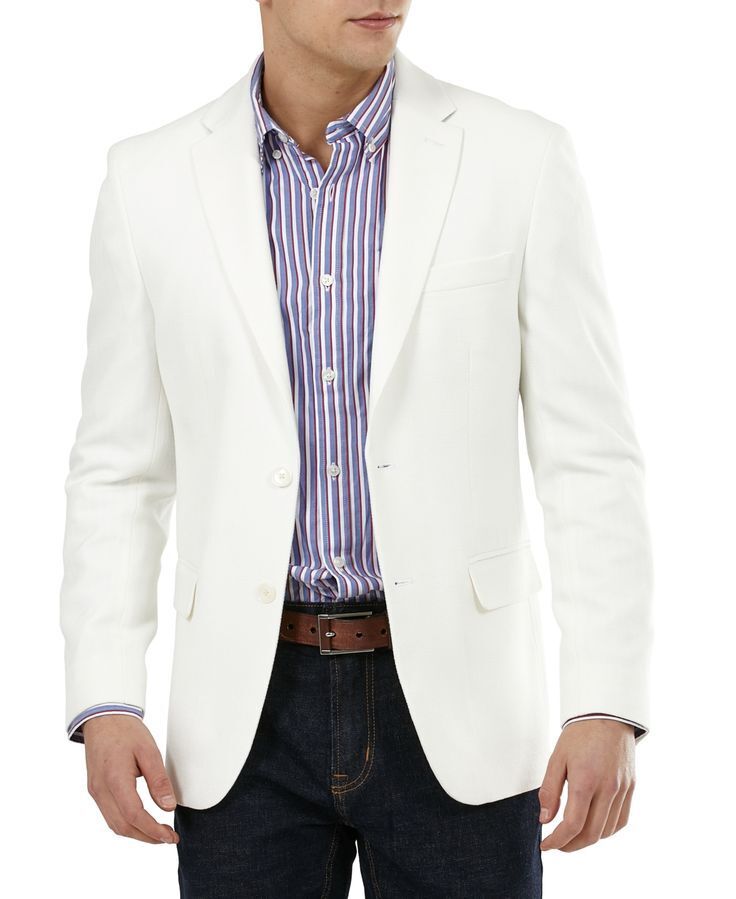 Tommy Hilfiger Men's Slim-Fit Solid Weave Blazer 44L Sport Coat Cream White