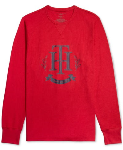 TOMMY HILFIGER Men's Thermal Waffle-Knit Logo Long-Sleeve Pajama T-Shirt XXL