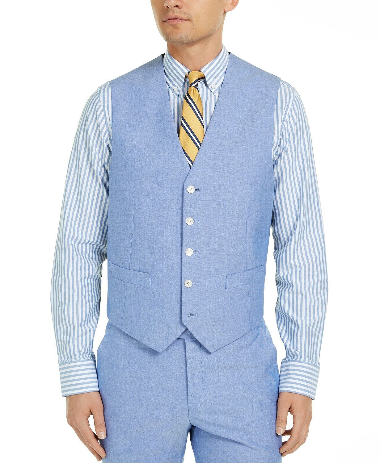 Tommy Hilfiger Modern-Fit TH Flex Stretch Blue Chambray Suit Vest Small