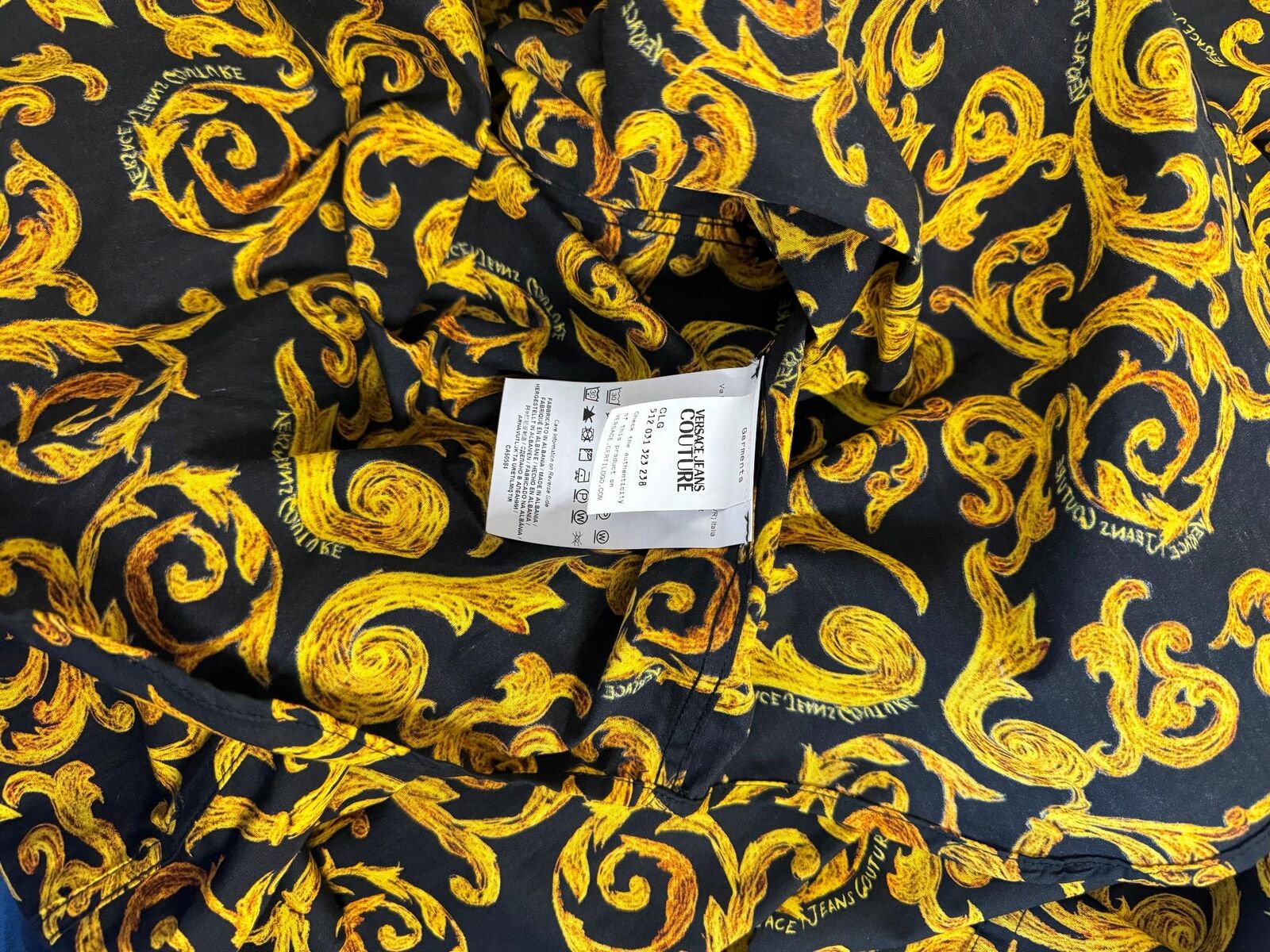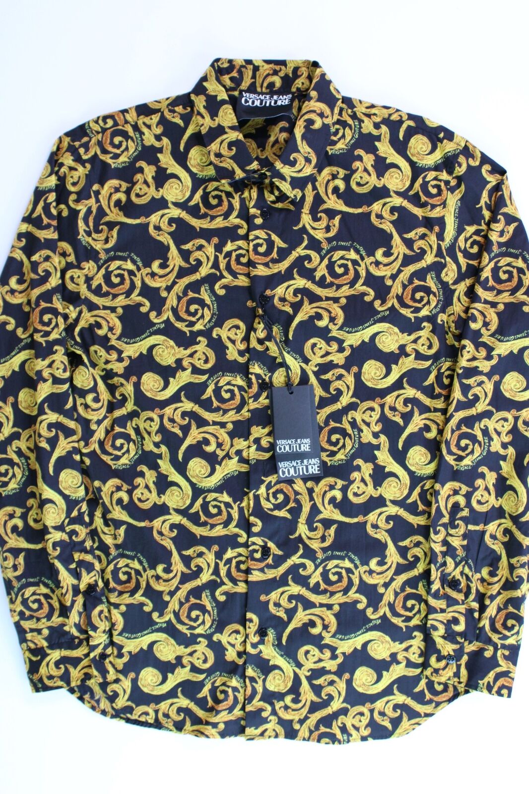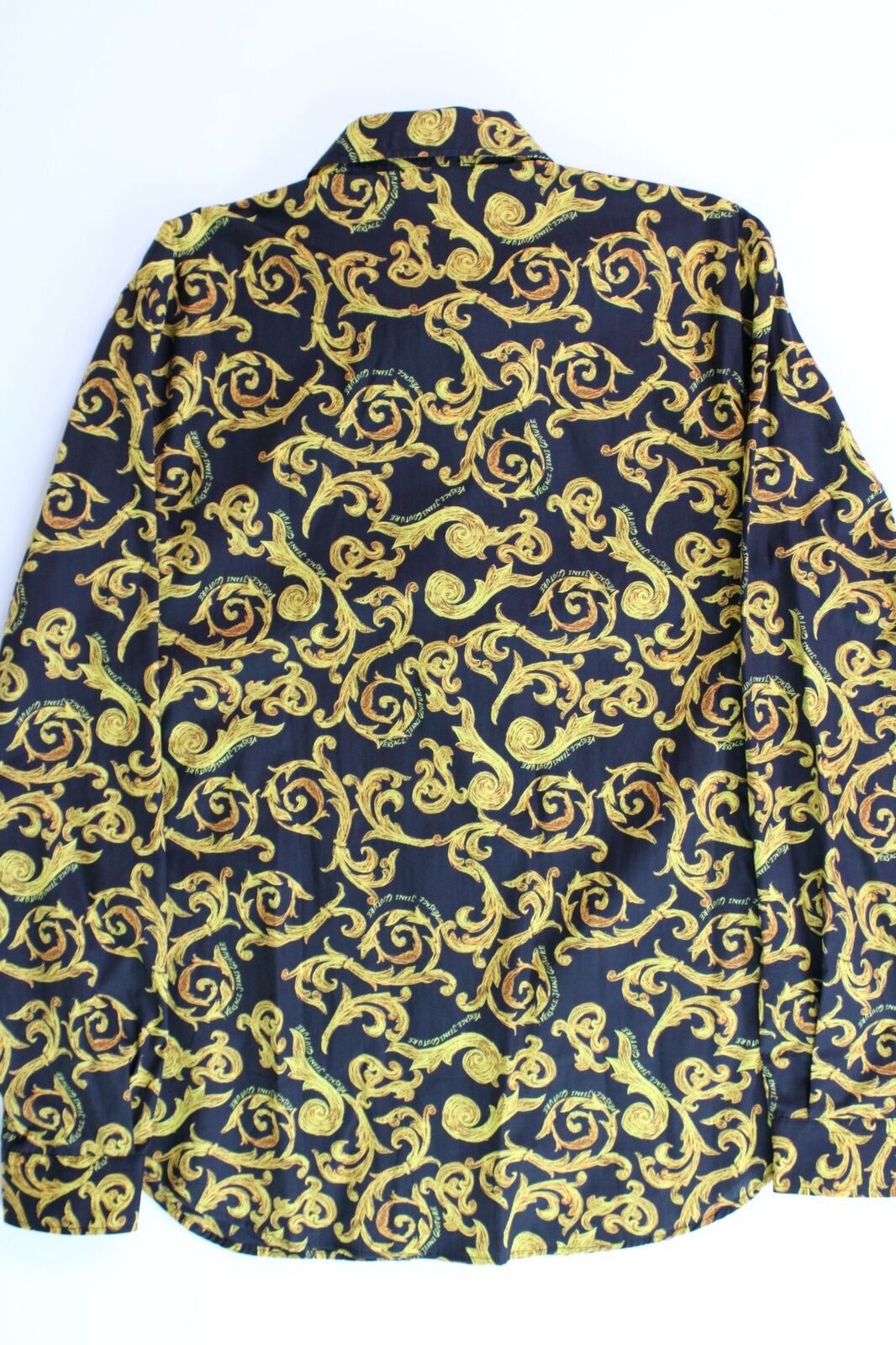 Versace Jeans Couture Mens Sketch Couture Print Button Shirt EU 46 US 36 Gold