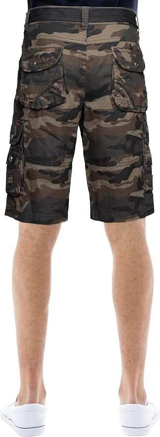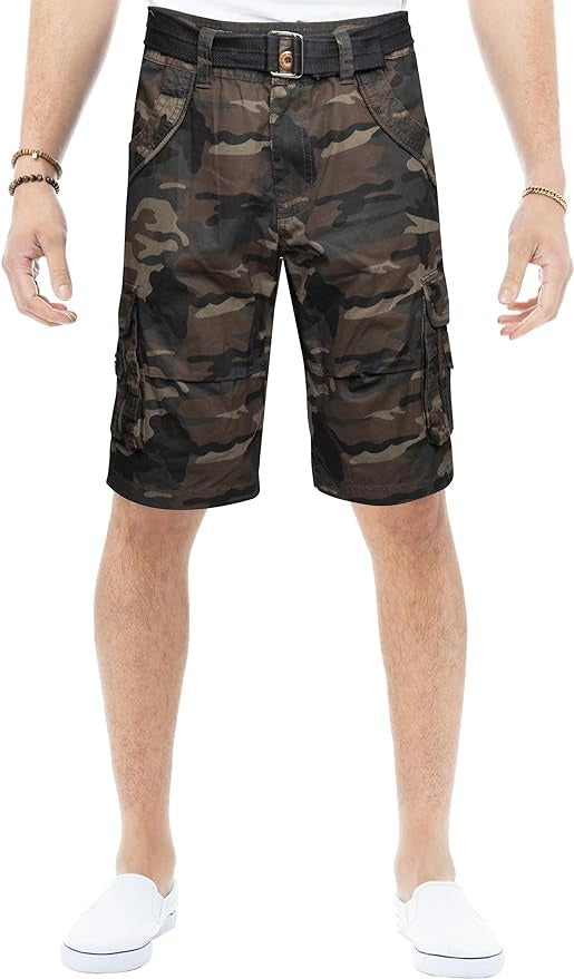 X-Ray Men's Belted Double Pocket 12.5" Cargo Shorts Olive Camo 32